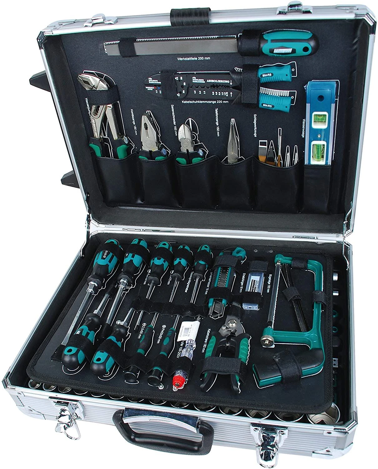 Aluminium gereedschaptrolley met 159-delige Green Line kwaliteitsgereedschapset voor professional en klusser.