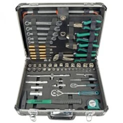 Professionele gereedschapkoffer, gevuld met 160-delige set Green Line kwaliteitsgereedschap.