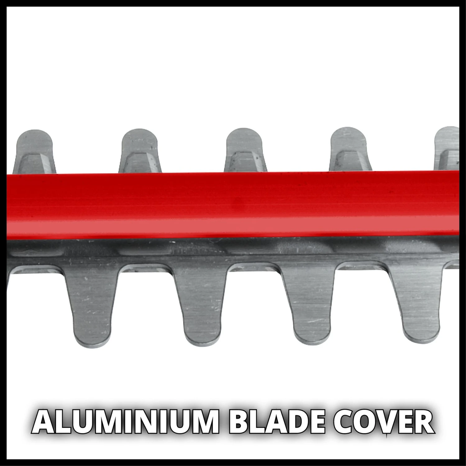 De Einhell snoerloze heggenschaar GC-CH 18/50 Li Solo combineert kracht en flexibiliteit: Als lid van de Einhell Power X-Change familie wordt de heggenschaar aangedreven door een van de krachtige lithium-ion accu’s uit deze serie. De kleine, handzame heggenschaar is een echte “lichtgewicht” en comfortabel in gebruik dankzij het lage gewicht. Dankzij de draaibare achterste handgreep en de grote voorste handgreep kunnen zelfs tijdrovende en uitgebreide heggenscharen met weinig vermoeidheid worden uitgevoerd.