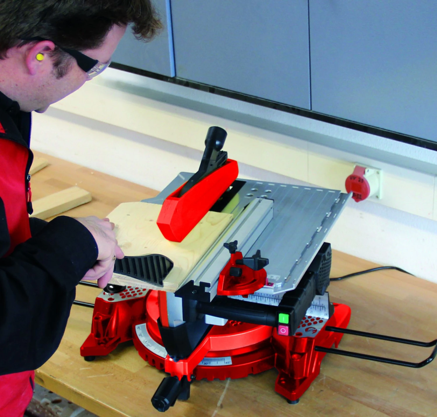 Max. zaagcapaciteit 90° x 90°: 170×85 mm, 90° x 45°: 110×85 mm, 45° x 90°: 170×50 mm, 45° x 45°: 75×50 mm