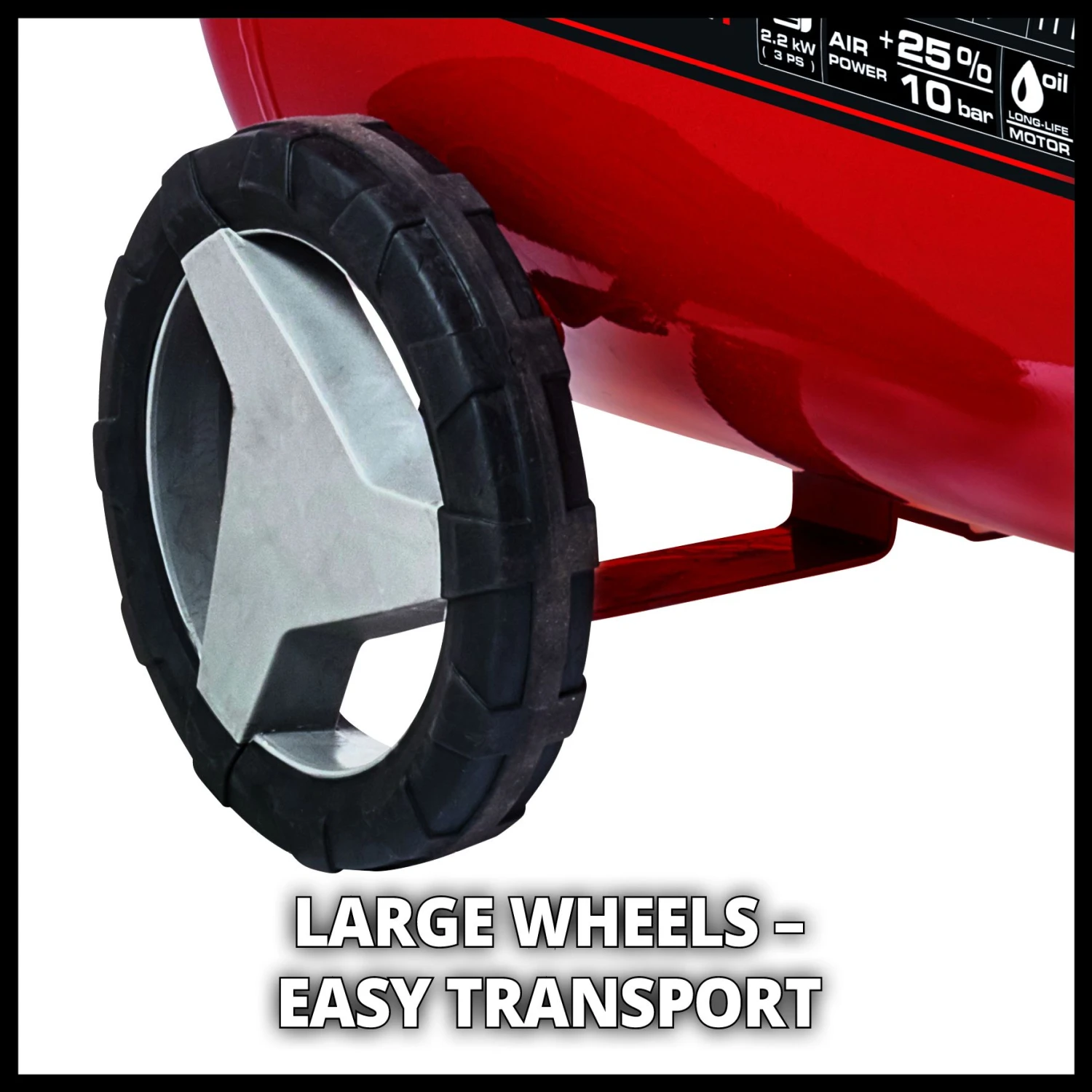 De Einhell TE-AC 400/50/10 V Compressor is een krachtige en universeel toepasbare compressormet 2200 watt vermogen. De compressor is geschikt voor zowel stationaire als mobiele persluchtwerkzaamheden. Met de compressor en het juiste persluchtgereedschap kan je verf of vernis aanbrengen, hout impregneren, banden, ballen of luchtbedden opblazen, blaas- of zandstraalwerkzaamheden in de werkplaats uitvoeren. De maximale werkdruk is 10 bar en kan voor veel persluchttoepassingen worden aangepast met behulp van een drukregelaar. De compressor heeft een aanzuigcapaciteit van 400 liter per minuut en een hoge luchtopbrengst dankzij de dubbele compressorunit met een opbrengst van 155 liter per minuut bij 7 bar. De tank met een inhoud van 50 liter biedt voldoende luchtreserves. De oliesmering zorgt voor een lange levensduur en het oliepeil is eenvoudig te controleren via een kijkglas. Er zijn een manometer en snelkoppeling voor de geregelde werkdruk en ook voor de ongeregelde druk in de tank. Een veiligheidsventiel zorgt voor veiligheid van de gebruiker, terwijl de wateraflaatplug het condensaat uit de tank afvoert. Trillingsdempende voeten zorgen voor een veilige stand tijdens gebruik, terwijl grote wielen en een praktische transporthandgreep eenvoudig transport mogelijk maken. Einhell is overtuigd van de kwaliteit en biedt tien jaar garantie tegen het doorroesten van de tank.