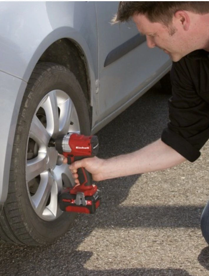 De EINHELL TE-CW 18 Li Koolborstelloze – solo Accu slagmoersleutel is een zeer krachtige machine met een koppel van 215 Nm.