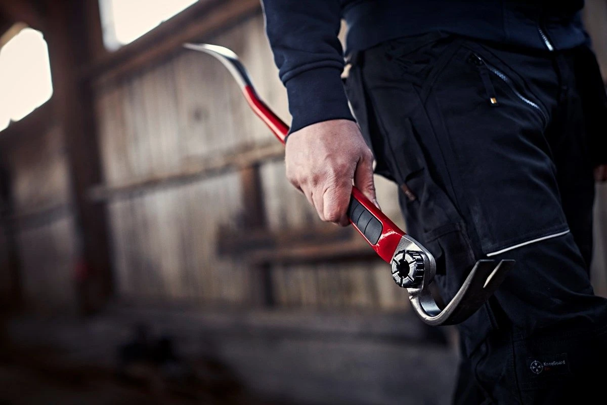 Hultafors instelbare koevoet vervaardigd uit hoogwaardig staal met ergonomische rubber beklede handgreep.