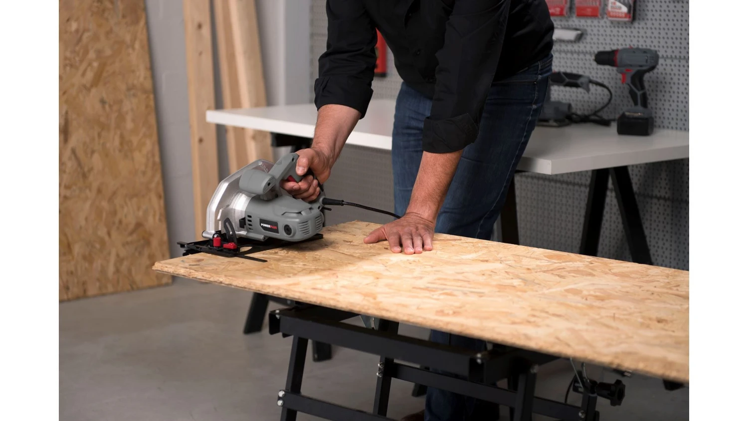 Deze cirkelzaag heeft een vermogen van 1200W en kan gebruikt worden om lange rechte zaagsnedes in hout en plastic te maken. Het zaagblad heeft een diameter van Ø185mm en je gaat aan de slag met een hoog toerental van 5500min-1. Met de zijgeleider kan je tot op een afstand van 100mm parallel aan de rand zagen, maar dankzij het kantelbare zaagblad kan je er ook versteksneden mee uitvoeren.