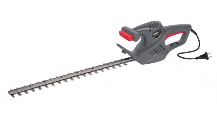 Met deze 550W elektrische heggenschaar van Powerplus snoei je je hagen veilig en comfortabel. De heggenschaar is licht van gewicht en dankzij de tweede handgreep kan je ze met twee handen bedienen. De vlijmscherpe messen met dubbele actie kunnen takken tot 16mm zonder problemen doorsnijden aan een maximaal toerental van 3200min-1. Bij dreigend gevaar worden de messen bliksemsnel gestopt met de elektrische veiligheidsrem. De beschermkap beschermt je handen en zorgt voor de nodige veiligheid tijdens het werken. Om het snoer uit de buurt van de messen te houden en beschadiging te voorkomen, kun je het aan de trekontlasting ophangen.