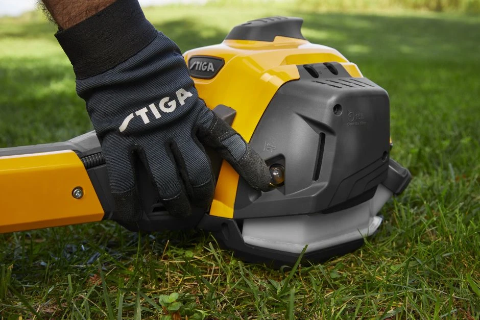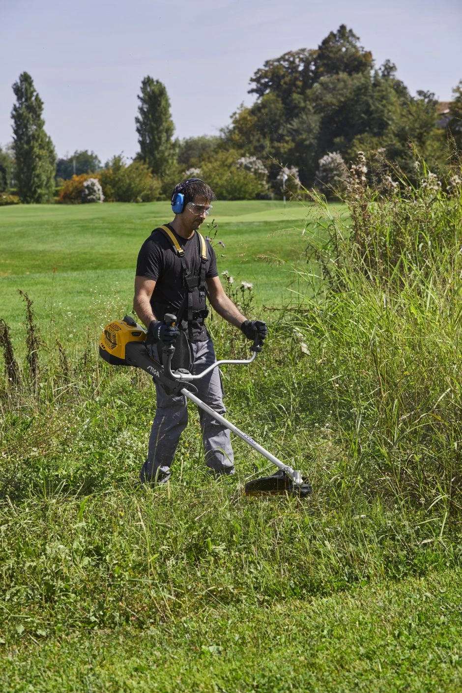 Bosmaaier aangedreven door een 52.8 cc tweetakt benzinemotor, rechte staal met versterkte steun, U-hendel en een maaibreedte van 45 cm.