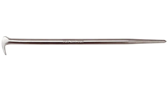 Koevoet met een ronde, spitse punt aan het ene eind en een vlakke ronde haak aan het andere einde.